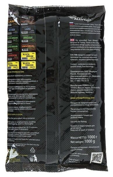 Прикормка ALLVEGA "Team Allvega Super Bream" 1кг (супер ЛЕЩ) 5 пакетов по 1 кг. 1 200 ₽