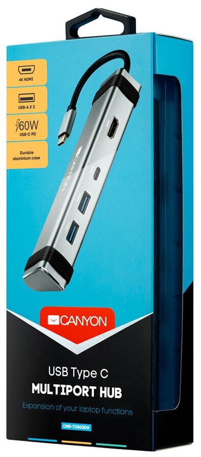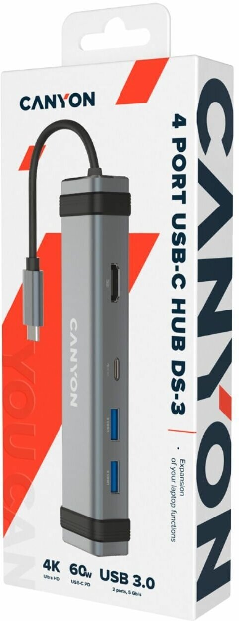 USB Hub Canyon DS-3 Type C, 4 порта (HDMI, USB Type C, 2хUSB 3.0)