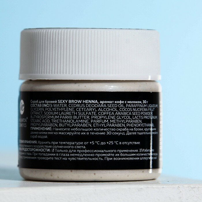 Скраб для бровей SEXY BROW HENNA, с ароматом кофе и молока, 30г информация: