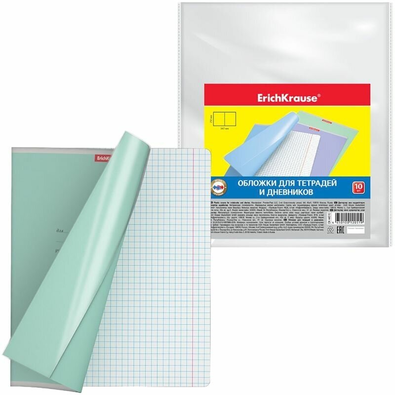 Обложки для тетради и дневника Erich Krause 10 шт, прозрачные, 50 мкм, 212х347 мм (44510)