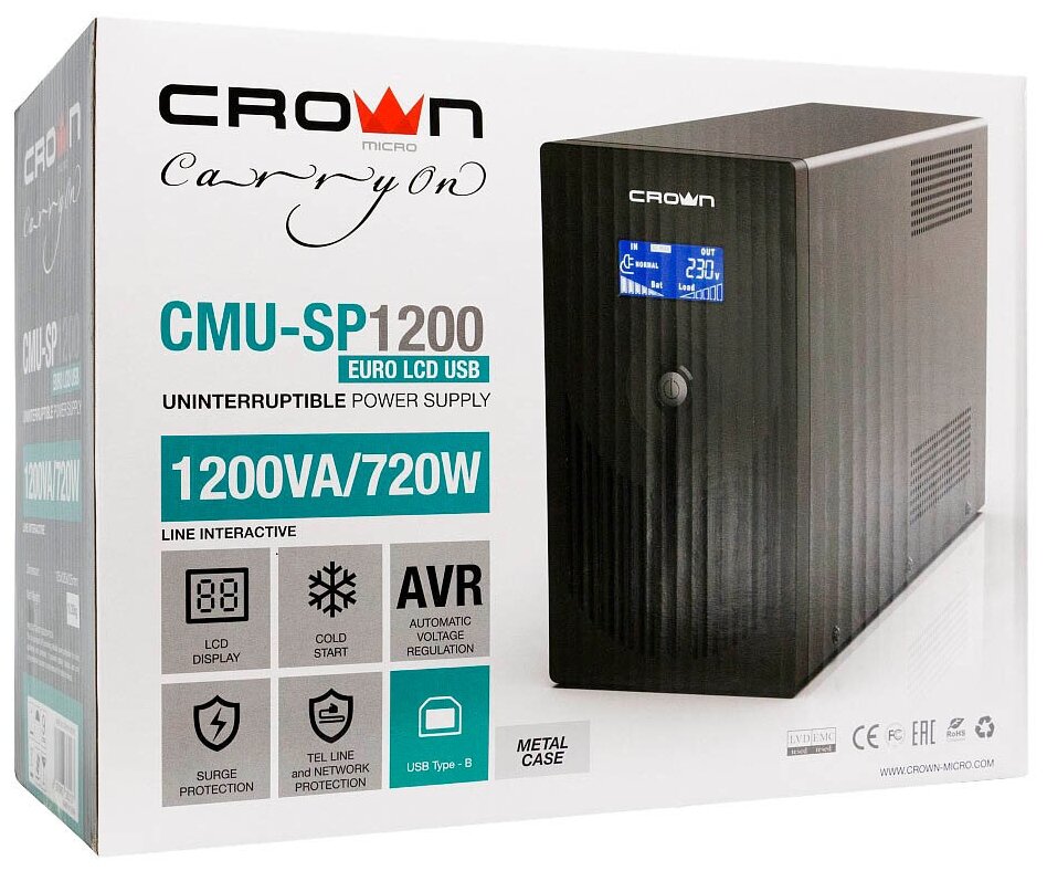 ИБП Crown Line Interactive CMU-SP1200EURO LCD USB, black информация: