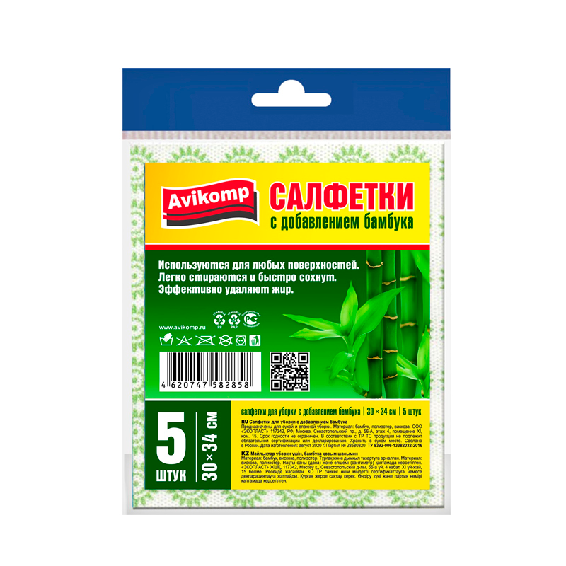 Авикомп / Avikomp Clein Set - Салфетки для уборки с добавлением бамбука 30х34 см, 5 шт информация: