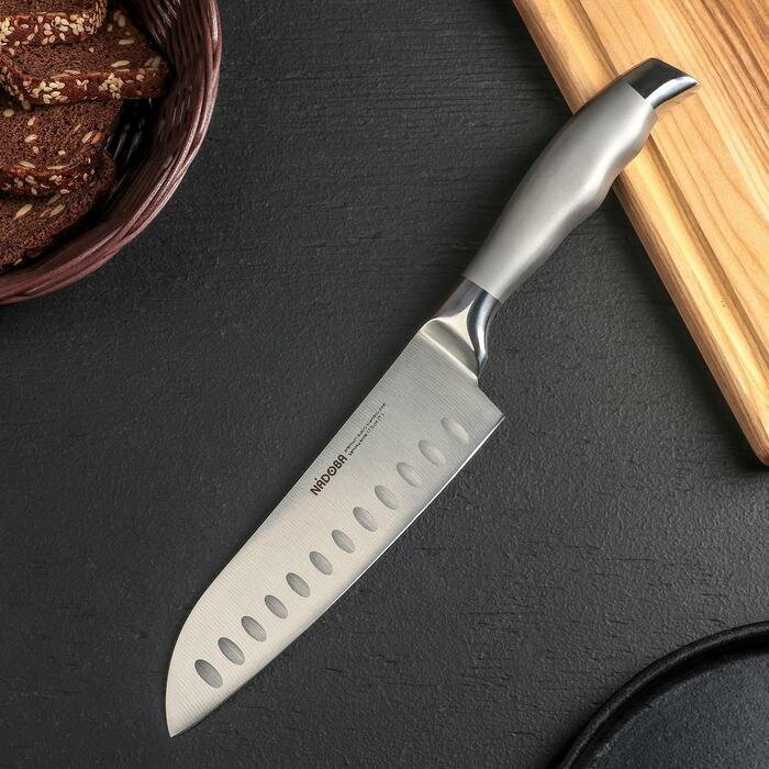 Нож кухонный NADOBA MARTA Сантоку, лезвие 17,5 см, ручка из стали NADOBA 2089978 .