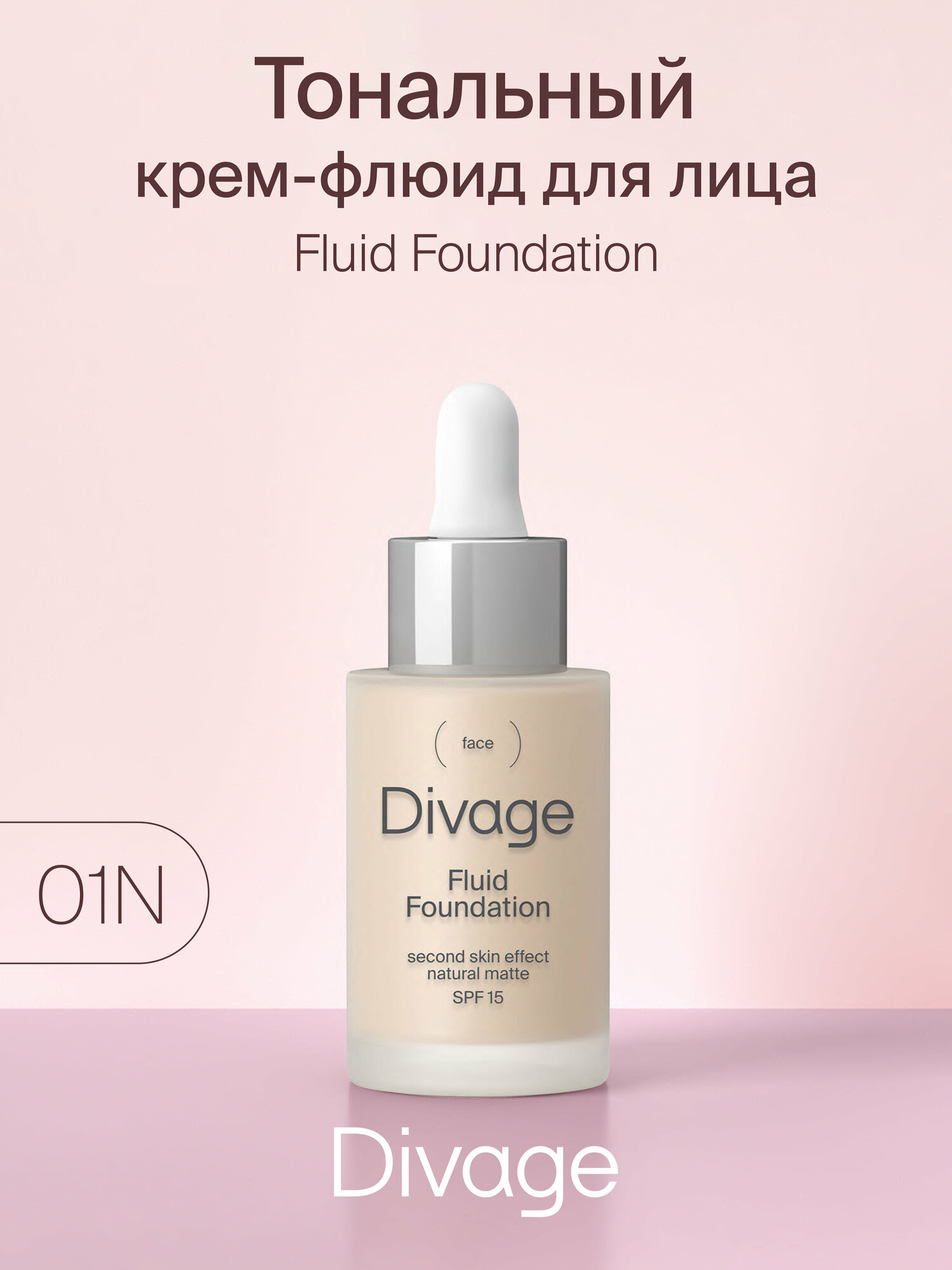 Диваж тональный крем-флюид для лица fluid foundation 01 розовый беж для любого типа кожа 30мл / с матовым финишем защита от солнца / декоративная