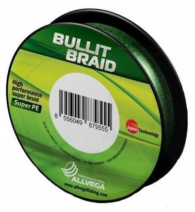 Плетеный шнур Allvega Bullit Braid 270м 0, 30мм 23, 4кг, темно-зеленая 1 850 ₽