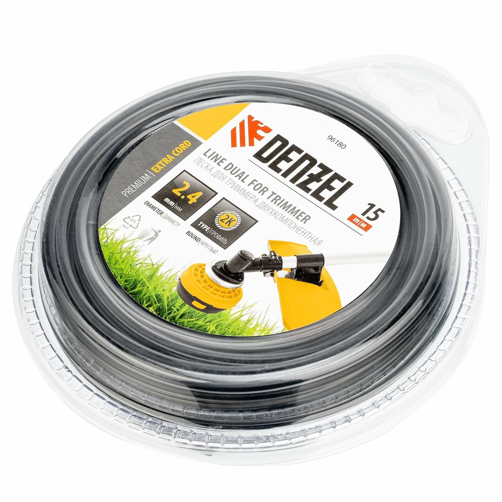 DENZEL 96180 Леска двухкомпонентная для триммера, круглая 2,4 мм x15 м, ExTRA CORD DENZEL Denzel 96180