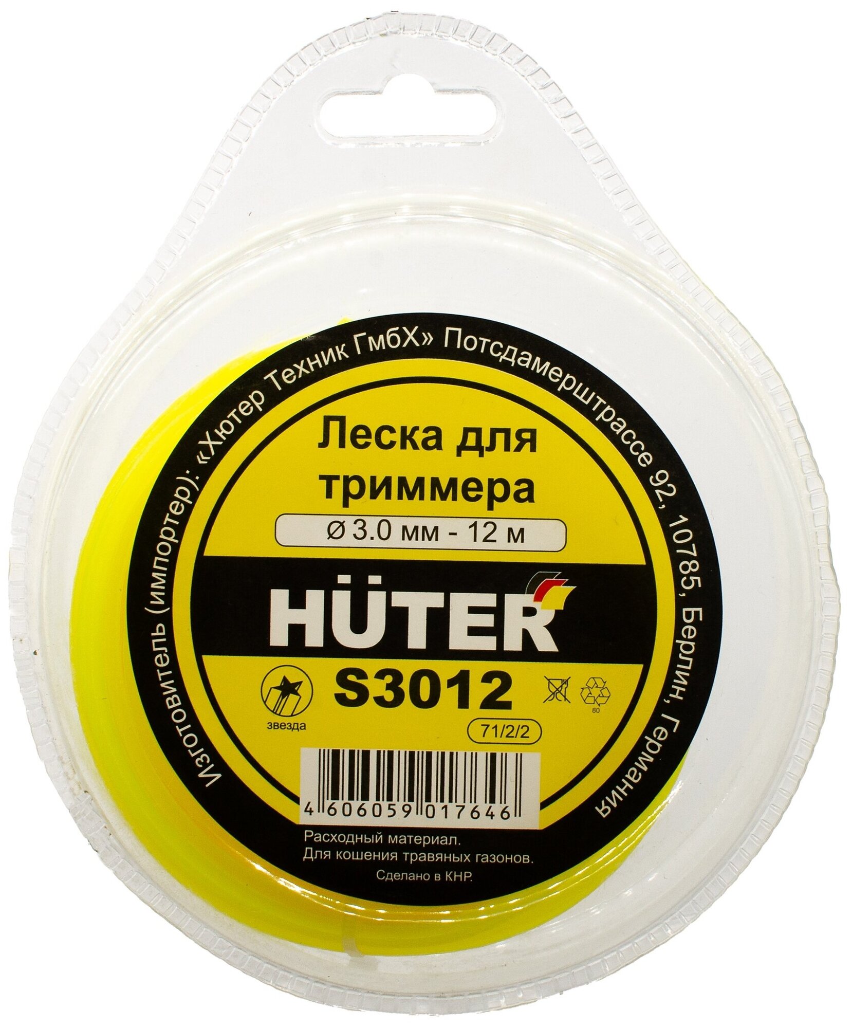 Леска для триммера S3012 звезда HUTER