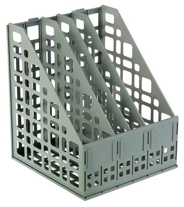 Комплект 3 шт, Подставка для журналов и бумаг СТАММ, сборная, 3 отделения, серая