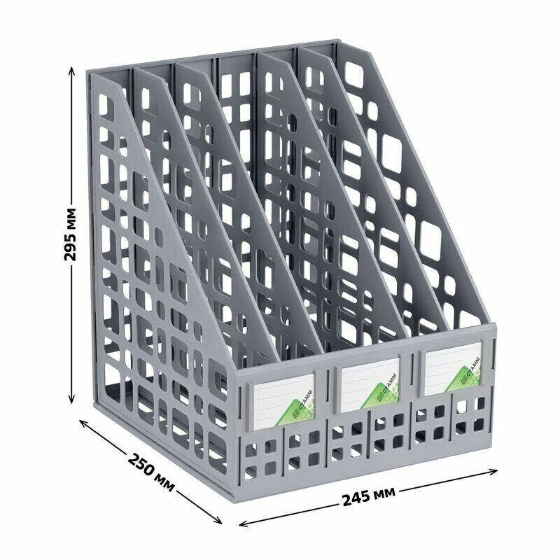 Лоток вертикальный для бумаг BRAUBERG "SMART-MAXI" (254х255х297 мм), 3 отделения, сетчатый, сборный, серый, 231524