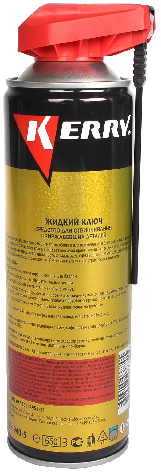 Жидкий ключ 650 мл аэрозоль KERRY с трубочкой KR-940-5