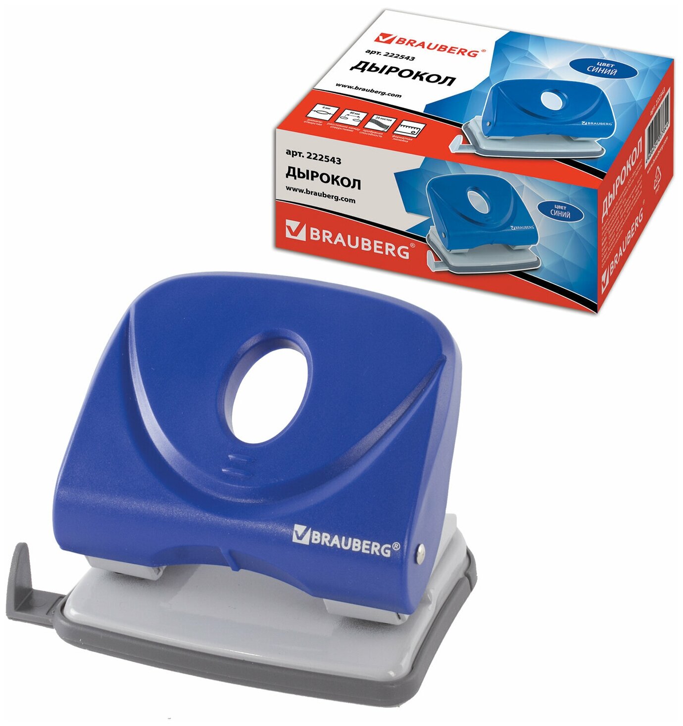 Дырокол BRAUBERG "Original", до 25 листов, синий, 222543, 222543 631 ₽