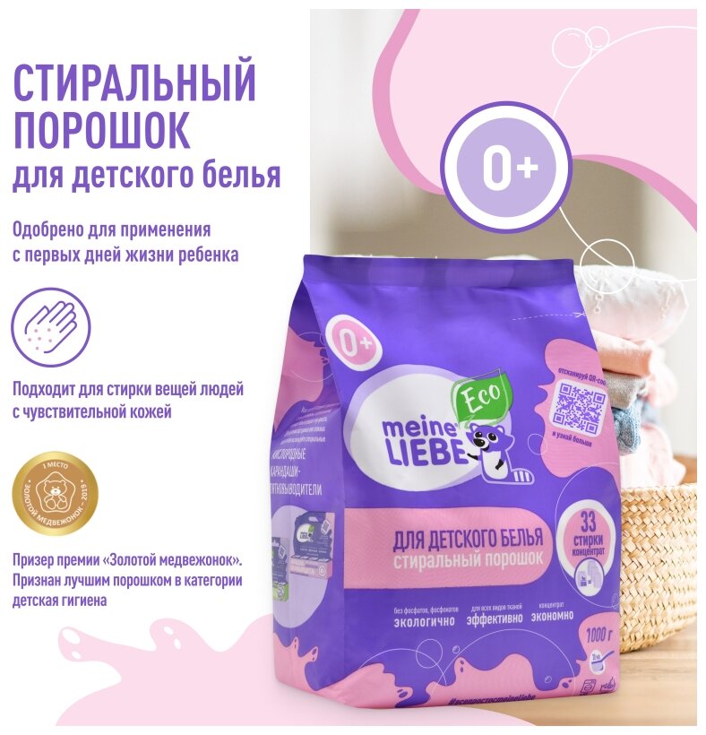 Meine Liebe Стиральный порошок для детского белья концентрированный 1 кг на 33 стирки