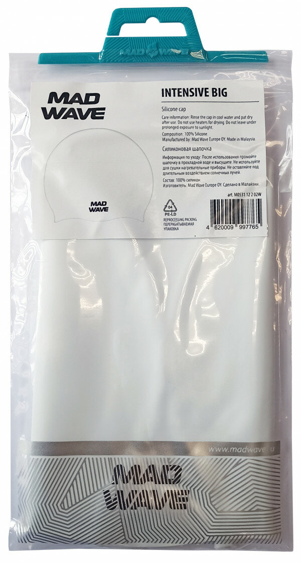 Шапочка для плавания MAD WAVE Intensive Big White