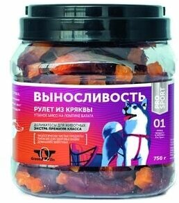 GreenQZin Лакомство для собак Выносливость (сушеное утиное мясо на ломтике батата) туба 750г