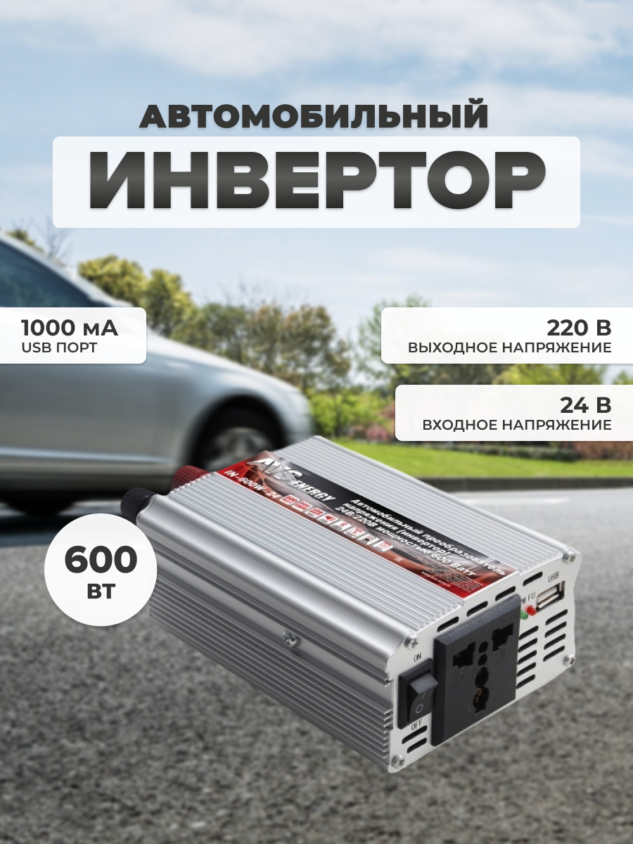 Отзывы на Преобразователь напряжения 24/220V, инвертор автомобильный AVS IN-600W-24, A07044S