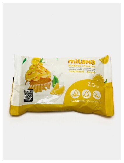 Влажные антибактериальные салфетки Milana Лимонный десерт (20 шт.) информация:
