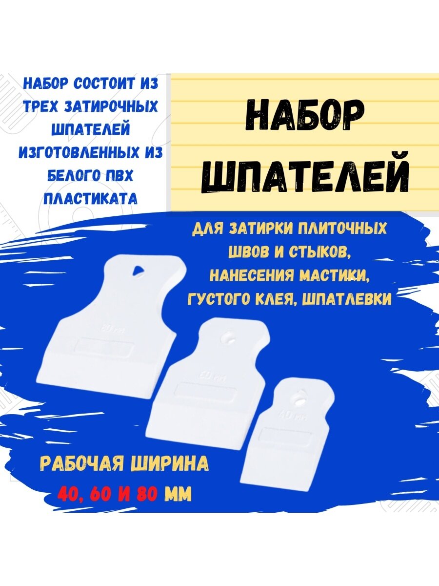 Набор шпателей 3 предмета белый резинопластик 40, 60, 80 мм. 12-2-102