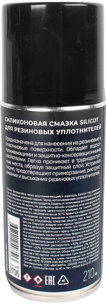 Смазка ВМПАВТО SILICOT SPRAY силиконовая для уплотнителей 150мл информация: