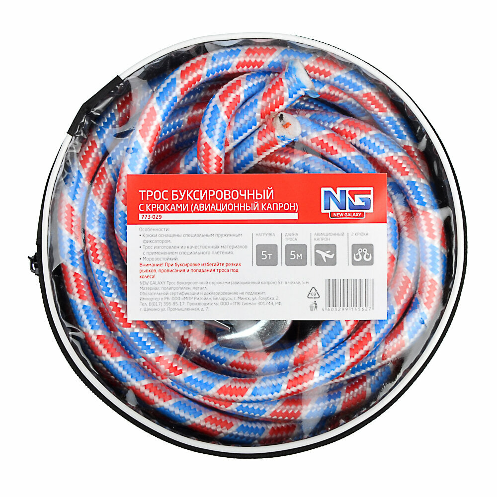 Трос буксировочный с крюками (авиационный капрон) 5т, в чехле, 5м информация: