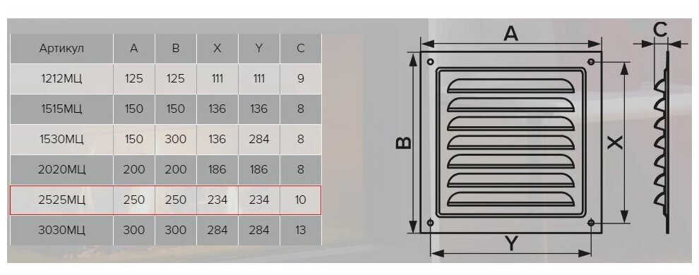 Вентиляционная решетка ERA 2525МЦ 250 x 250 мм серый информация: