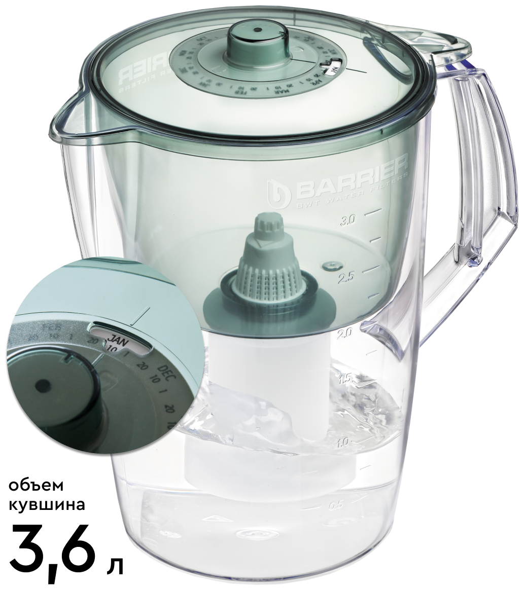 БАРЬЕР Норма малахит, фильтр-кувшин для очистки воды, 3,6 л, календарный индикатор