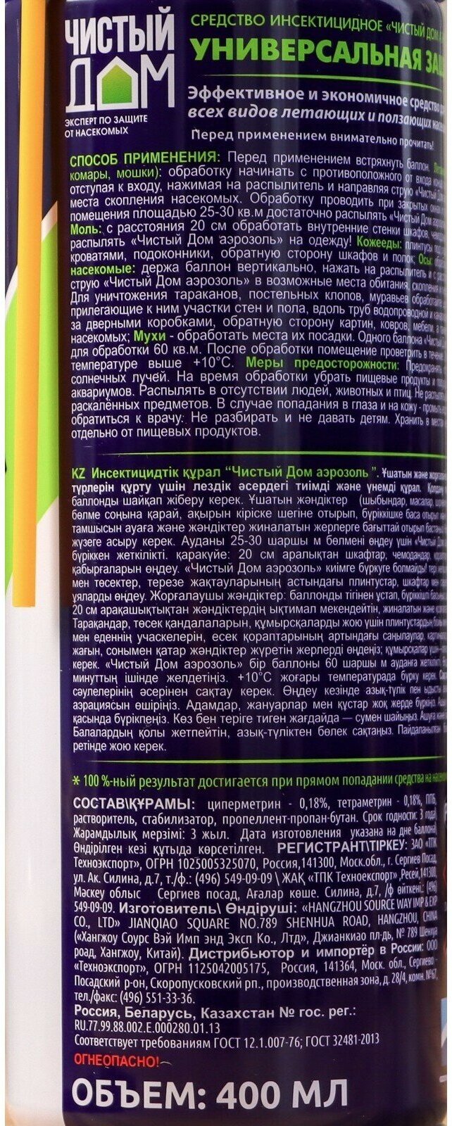 10 цен на Спрей от насекомых Чистый дом Супер, универсальный, без запаха, 400 мл (02-855)