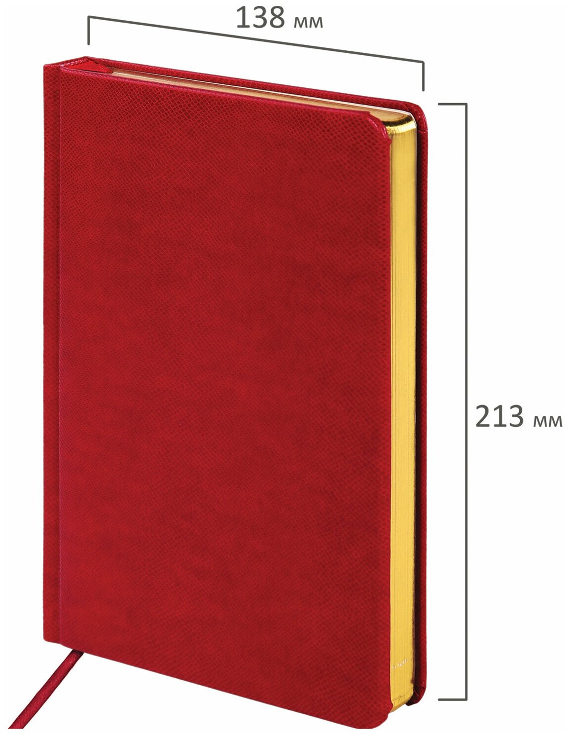 Ежедневник Brauberg недатированный, А5, 138х213 мм, "Iguana", под змеиную кожу, 160 л, бордовый, кремовый блок, золотой срез (125092) информация: