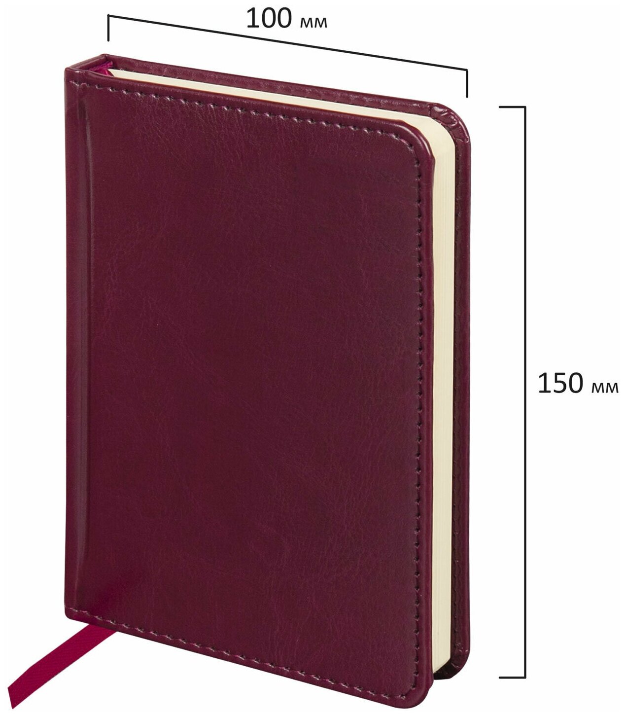 Ежедневник недатированный малый формат 100х150 мм А6 BRAUBERG "Imperial" под кожу, 160 л., бордовый, 123466, 123466 399 ₽