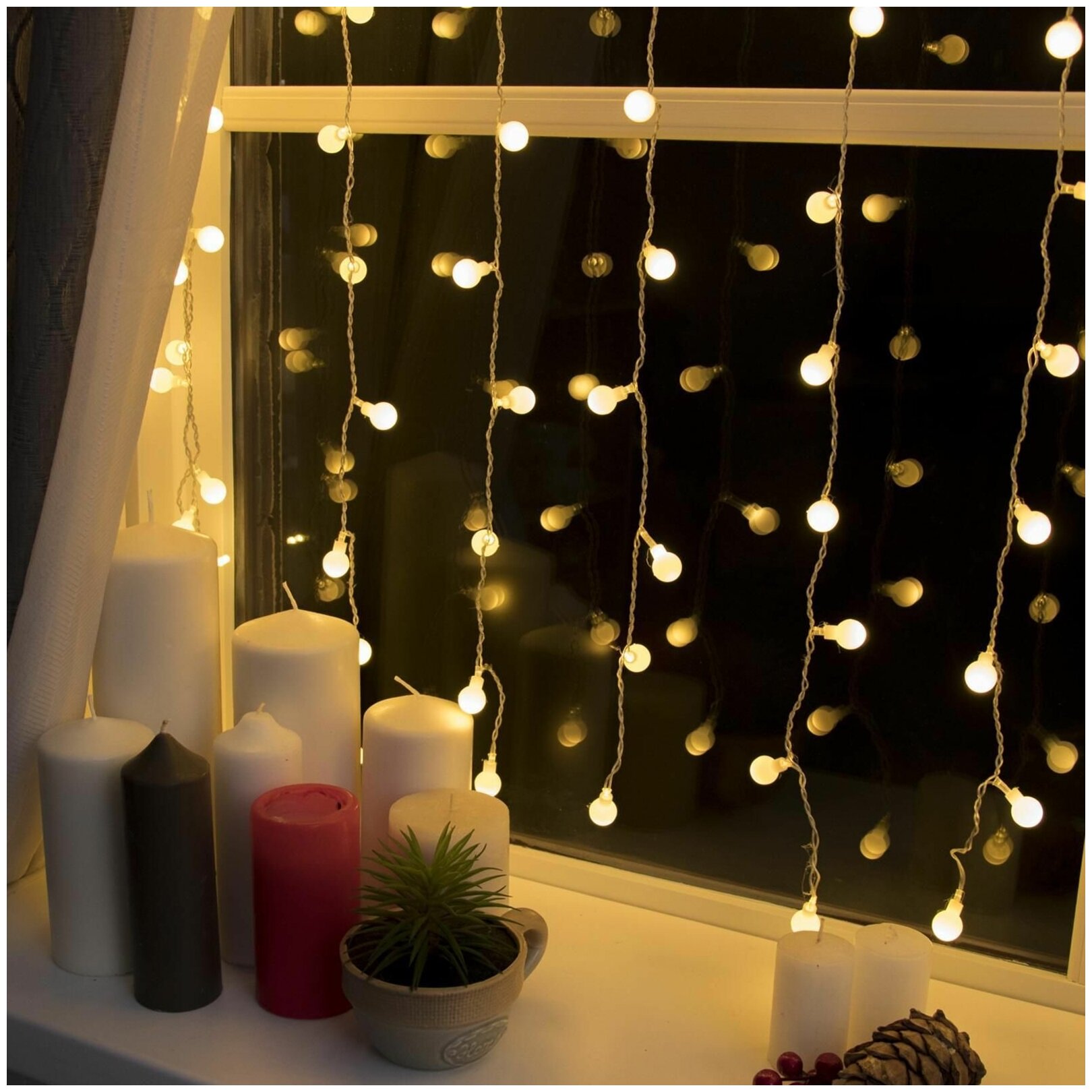 Отзывы на Гирлянда «Занавес» 2 х 1.5 м с насадками «Шарики», IP20, прозрачная нить, 360 LED, свечение тёплое белое, 8 режимов, 220 В