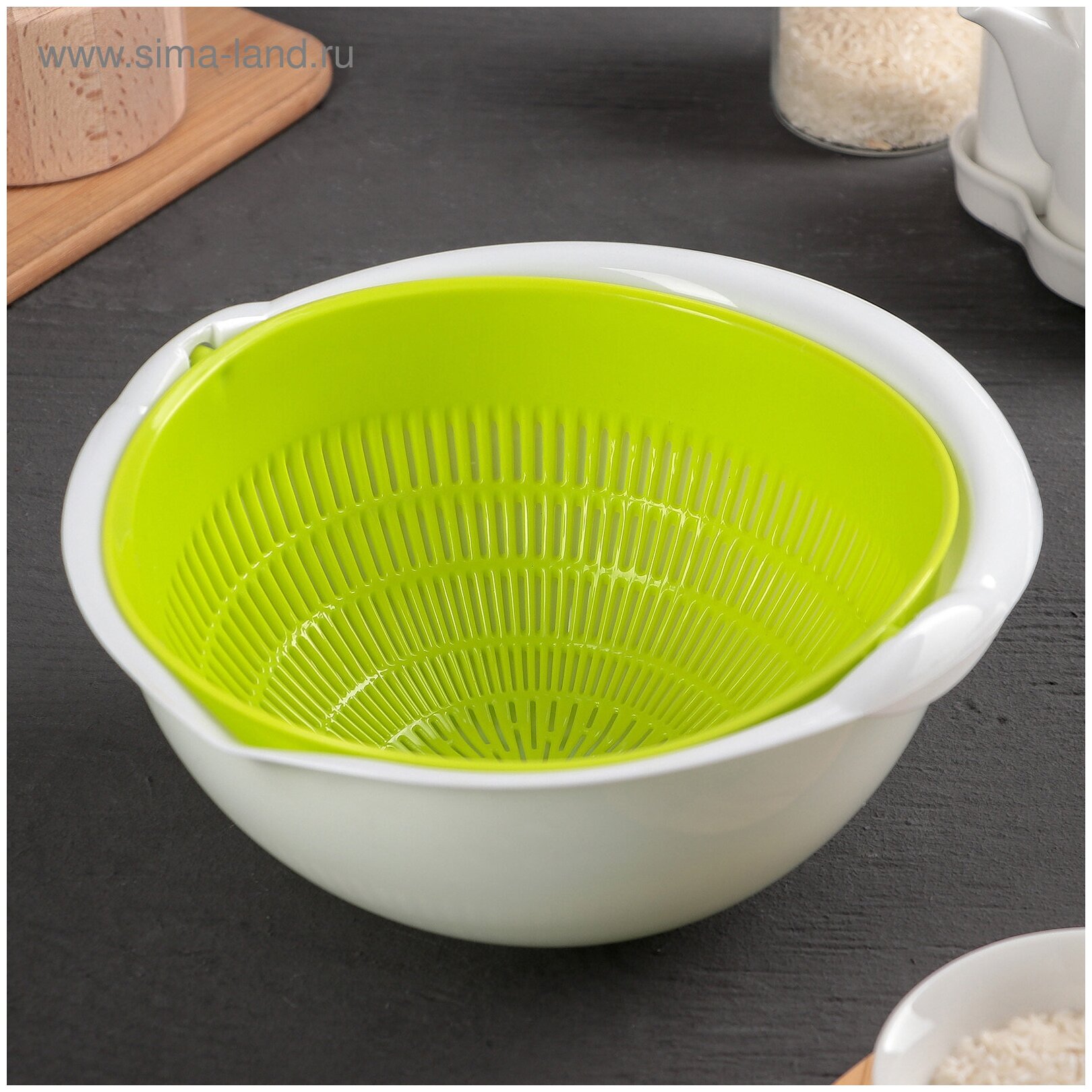 Миска-дуршлаг IDEA (М-Пластика) М 1129, 1.7 л, 2 шт., белый/фисташковый