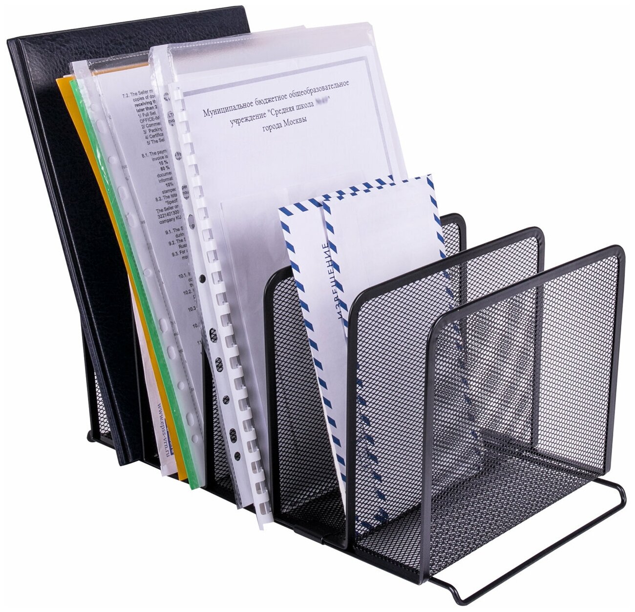 10 цен на Подставка для сортировки бумаг Brauberg Germanium, 5 секций, настольная, черная (231968)