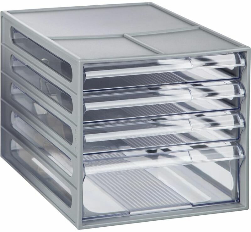 Блок из 4 выдвижных лотков Стамм, серый корпус, прозрачные лотки (арт. 323302)