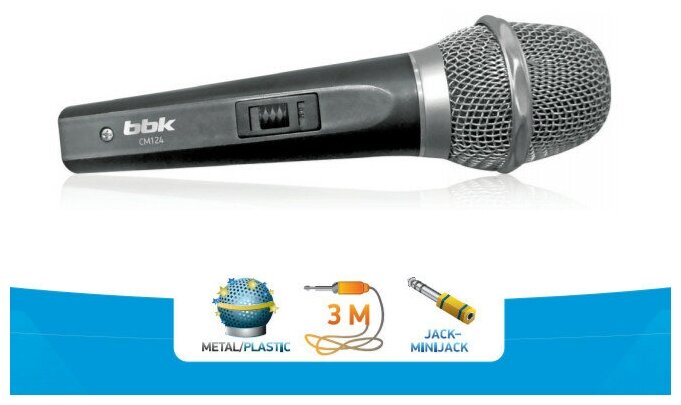 Универсальный динамический проводной микрофон BBK CM124 темно-серый