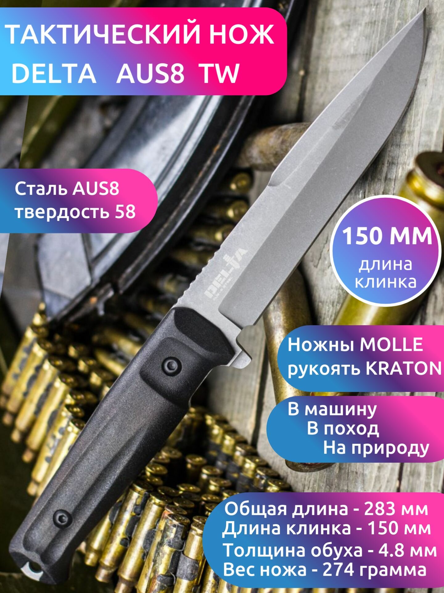 10 цен на Тактический нож Delta AUS-8 Tacwash