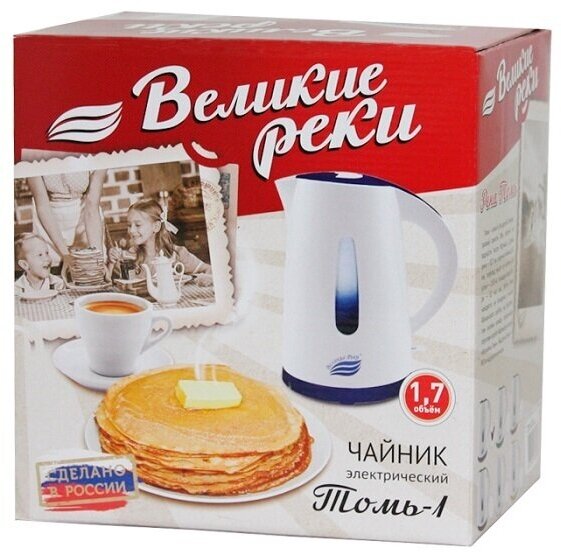 Чайник электрический великие реки Томь-1, 1850Вт, белый и синий