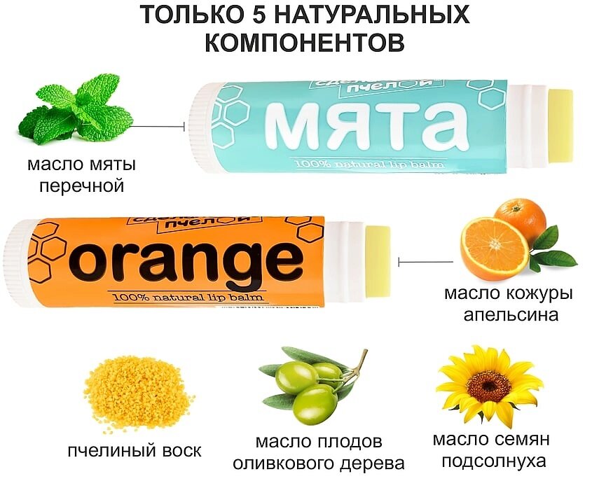 10 цен на Бальзамы для губ "Мята & Ogange", с пчелиным воском Сделано пчелой 20 мл 2 шт