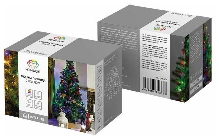 Гирлянда елочная с кольцом, 7 нитей по 1,8 метра, цвет диодов мультиколор, не соединяется NEON-NIGHT (Применяется для эксплуатации в помещении. Класс