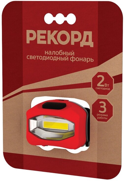 Фонарь налобный Рекорд SH-350 (23173) светодиодный 1 LED 2 Вт на батарейках ААА пластик 3 режима