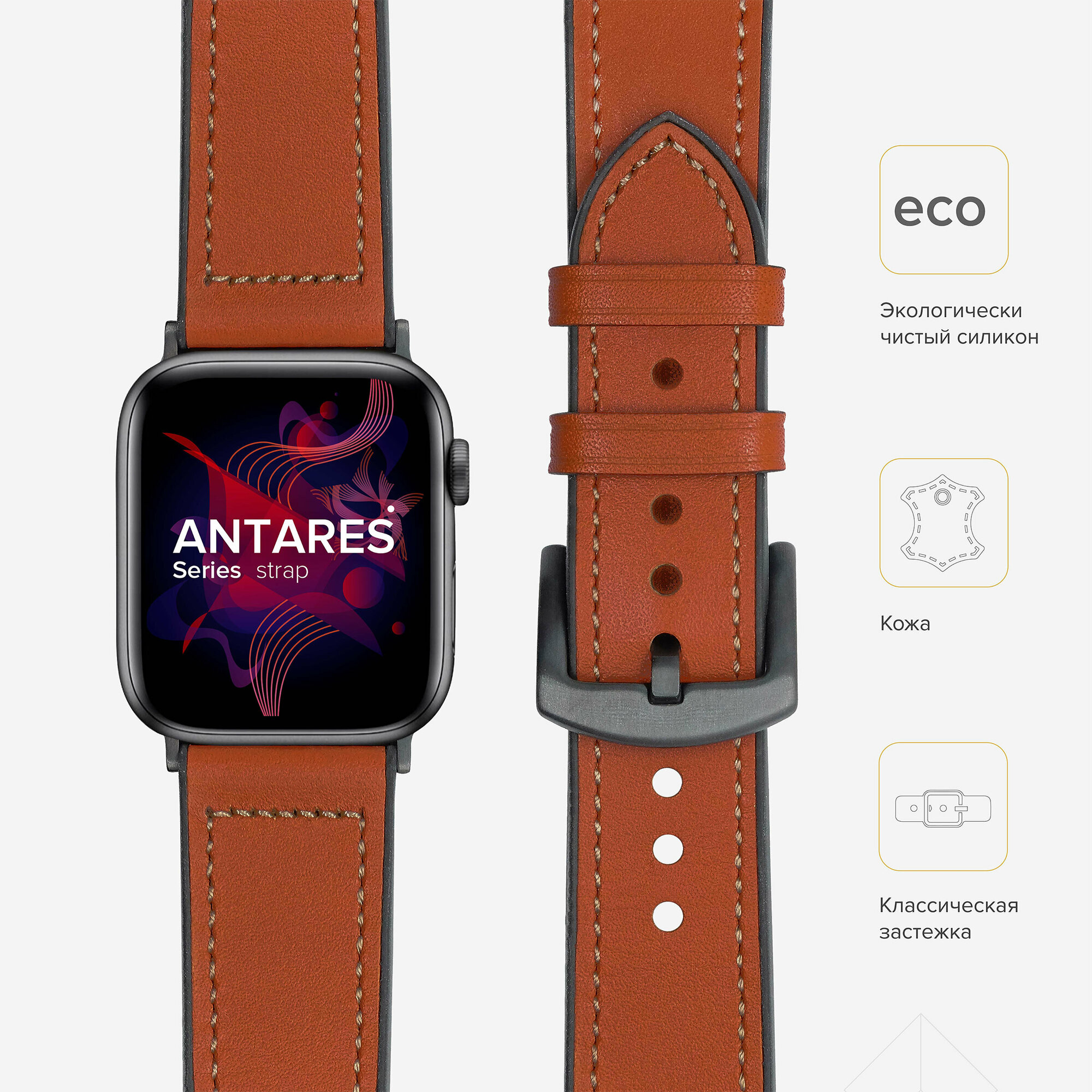 Отзывы на Комбинированный ремешок кожа/силикон для Apple Watch 38/40/41 mm LYAMBDA ANTARES LWA-10-40-OR Orange-brown