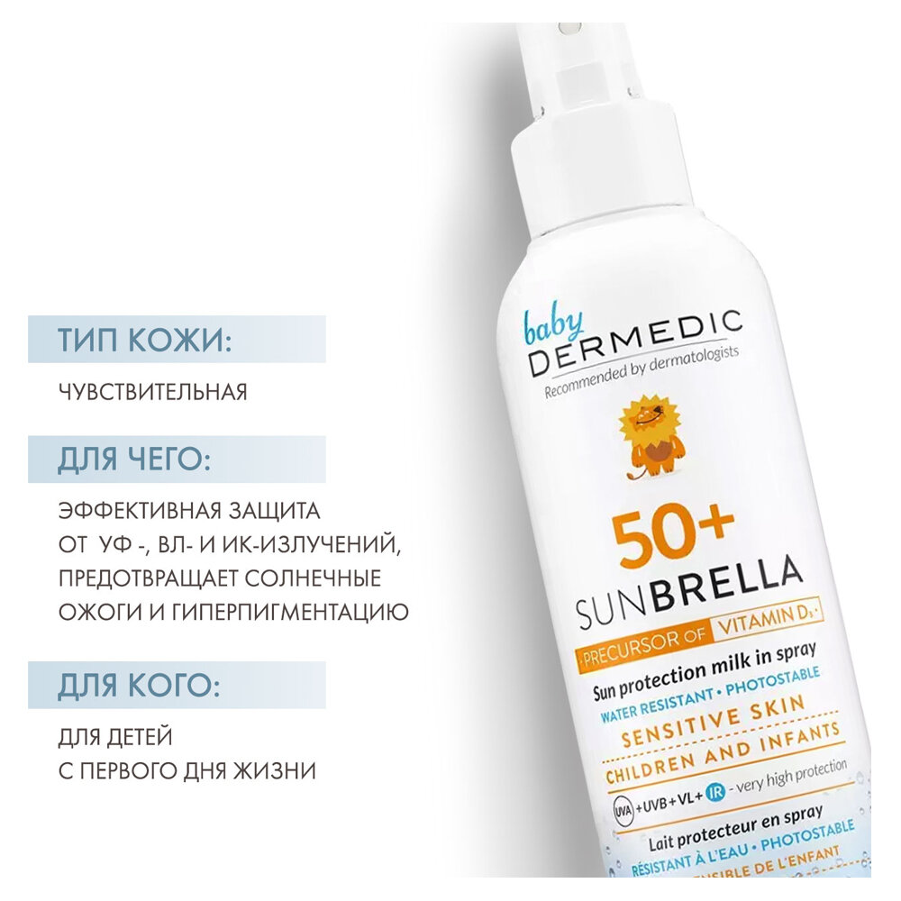 Dermedic Sunbrella Baby Защитное молочко-спрей для детей SPF50, 150 мл 1 шт 1 664 ₽
