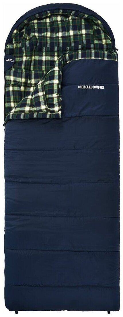 Спальный мешок TREK PLANET Chelsea XL Comfort, широкий с фланелью, синий (правая молния)