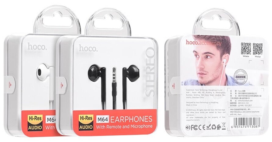 Наушники M64 Melodious wire control earphones, HOCO, черные