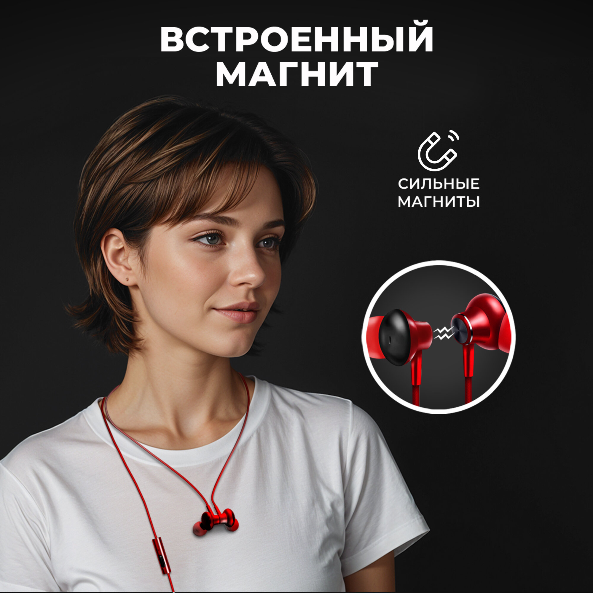Наушники проводные WALKER H900, вакуумные, с микрофоном и кнопкой ответа, mini-jack 3.5mm, красные / гарнитура для телефона для смартфона Android, для xiaomi redmi, для huawei, для honor, для samsung, наушники для бега и спорта