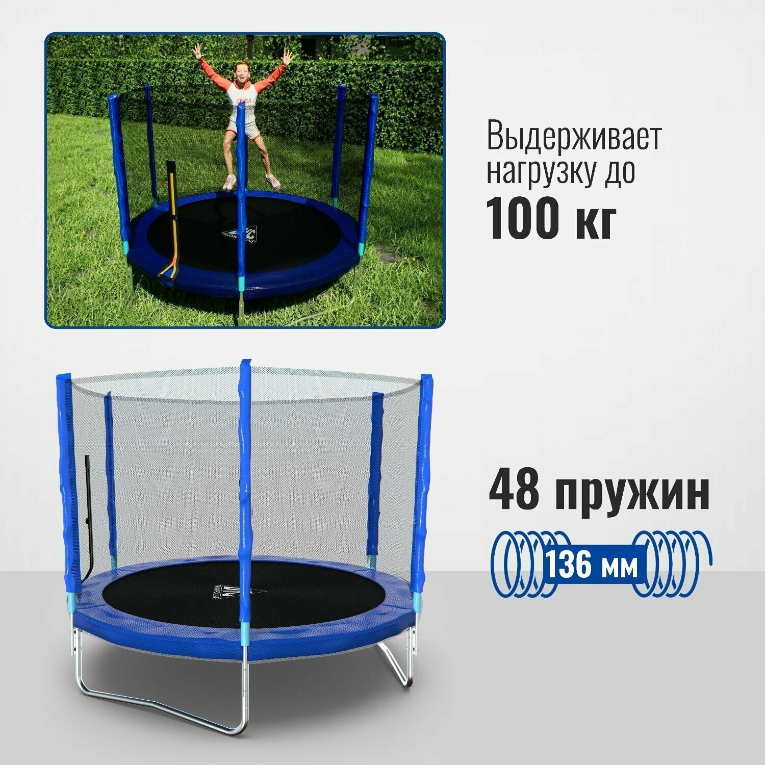 Батут с защитной сеткой DFC Trampoline Fitness 8FT голубой внешняя сетка 14 990 ₽