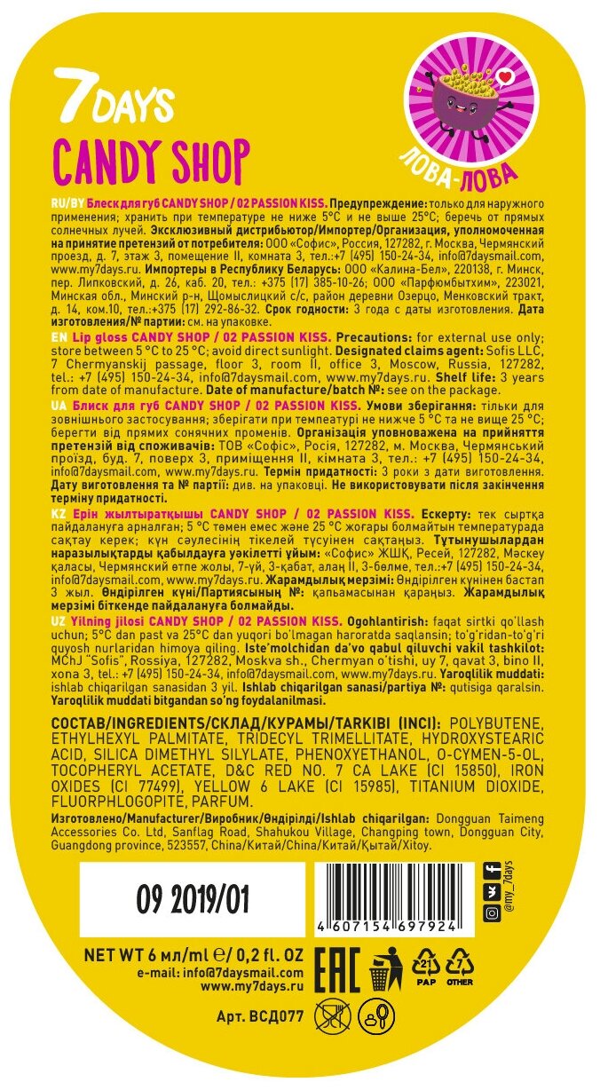 10 цен на Блеск для губ 7DAYS Candy Shop, тон 02 Passion Kiss .