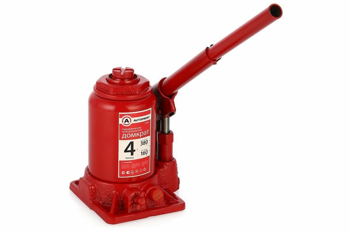 Домкрат бутылочный AUTOPROFI DT-04 гидравлический, телескопический, 4 тонны., защита от перегруза, высота подъёма 160 - 380 мм.