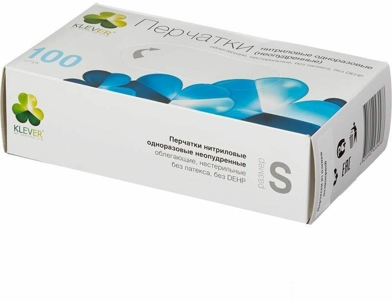 Перчатки маникюрные 100 штук, Перчатки KLEVER нитриловые, одноразовые, смотровые, неопудренные, р-р S, голубой, 50 пар.
