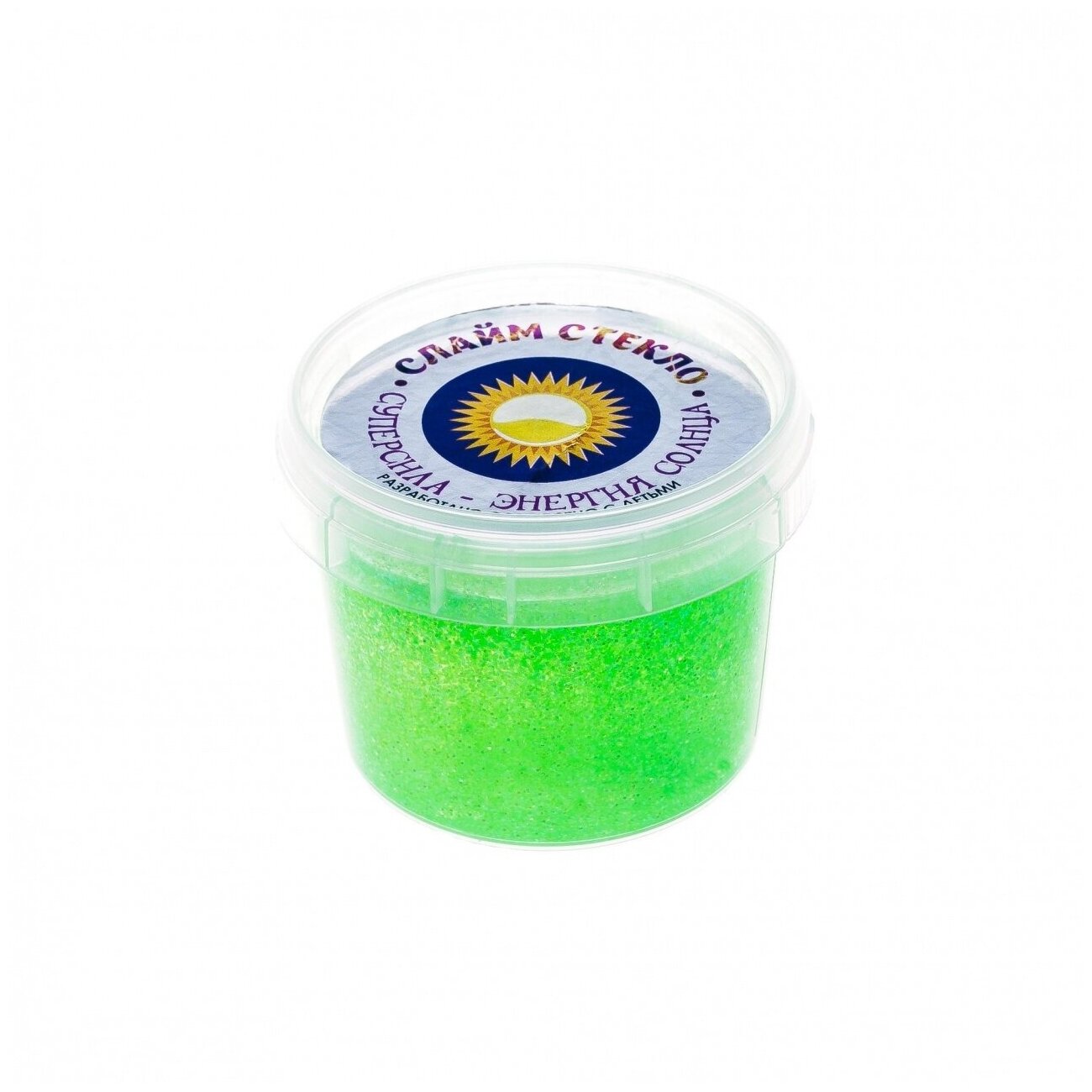 Слайм Стекло. Лизун. Лепа (100гр, с зелеными неоновыми блестками) (t замерзания -15°C) (в банке)