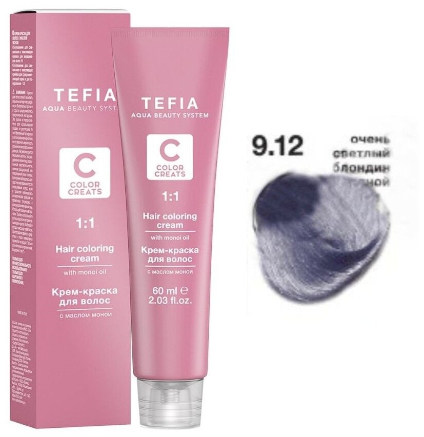 Крем-краска с маслом монои TEFIA Color Creats, 60 мл (Т 9.12 тонер лед) информация:
