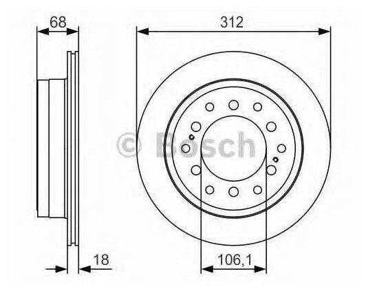 Диск тормозной TOYOTA LAND CRUISER 120 05] задний (упаковка 2 шт.), BOSCH 0986479s36